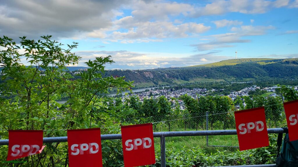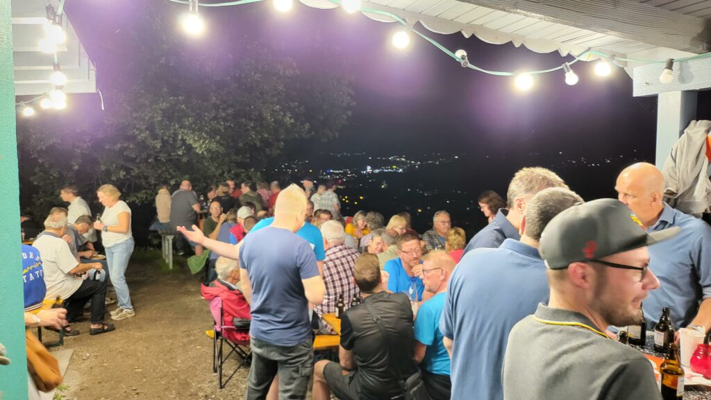 Einer schönen Tradition folgend, lud der Gülser SPD Ortsverein am 12.08.2023 wieder zum Heyerbergfest ein. In angenehm lockerer Atmosphäre verbrachten rund 100 Gülserinnen und Gülser bei netten Gesprächen, dem ein oder anderen kühlen Getränk und leckerem Essen diesen schönen Abend, natürlich auch in der Erwartung auf das Feuerwerk von „Rhein in Flammen“, welches von hier oben sehr schön zu beobachten ist. Erstmals in der Geschichte des kleinen Festes sorgte Cem Ilhan, Mitglied des „Deutschen Grillvereins e.V. „ für allerlei Köstlichkeiten vom Grill. Nicht nur die gute alte Bratwurst im Brötchen, auch Steak und türkische Spezialitäten erfreuten die Gaumen der Gäste.