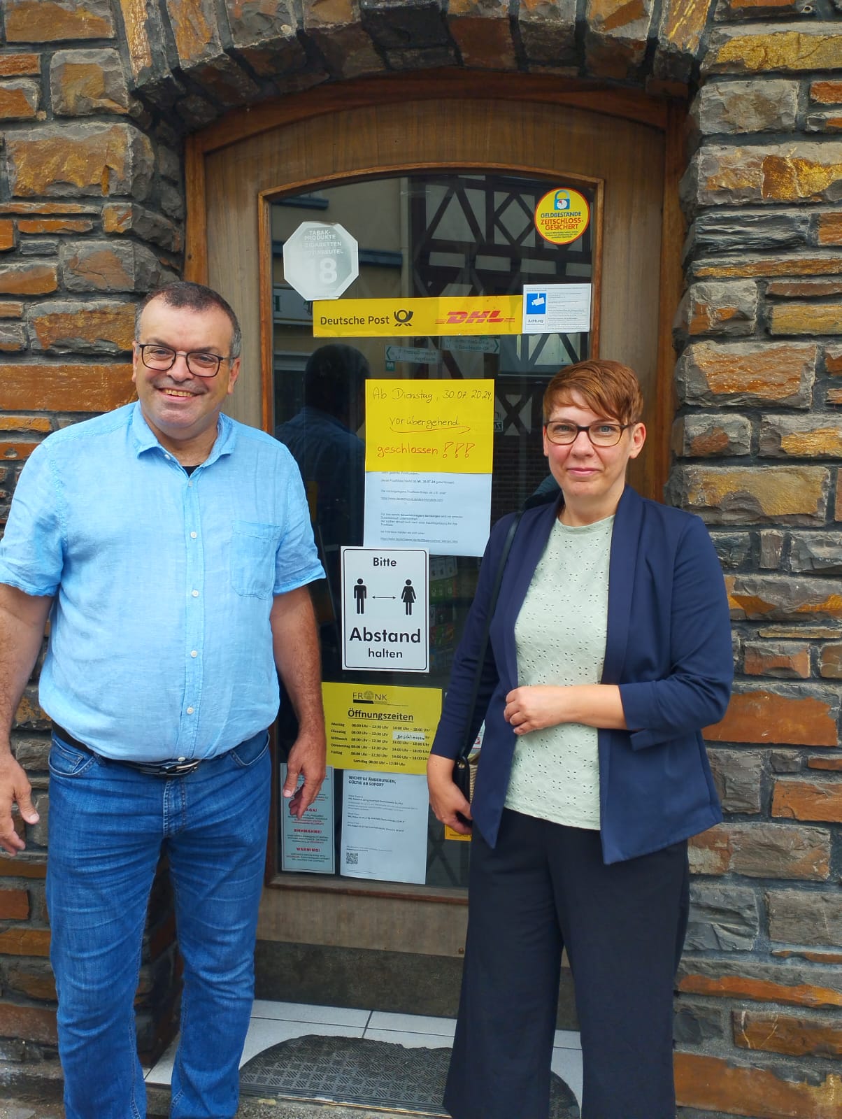 Auf dem Bild vor dem – z.Zt. leider geschlossenen – Ladenlokal in der Planstraße sind der Gülser SPD-Vorsitzende Toni Bündgen sowie seine Stellvertreterin Doreen Werth zu sehen.